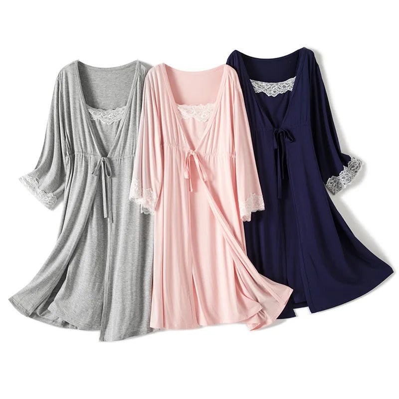 Maternity Robe For Hospital Nightgown Pregnant Women Nursing Nightwear Pajama Lace Sleepwear Ropa Mujer Embarazada Premama Suits