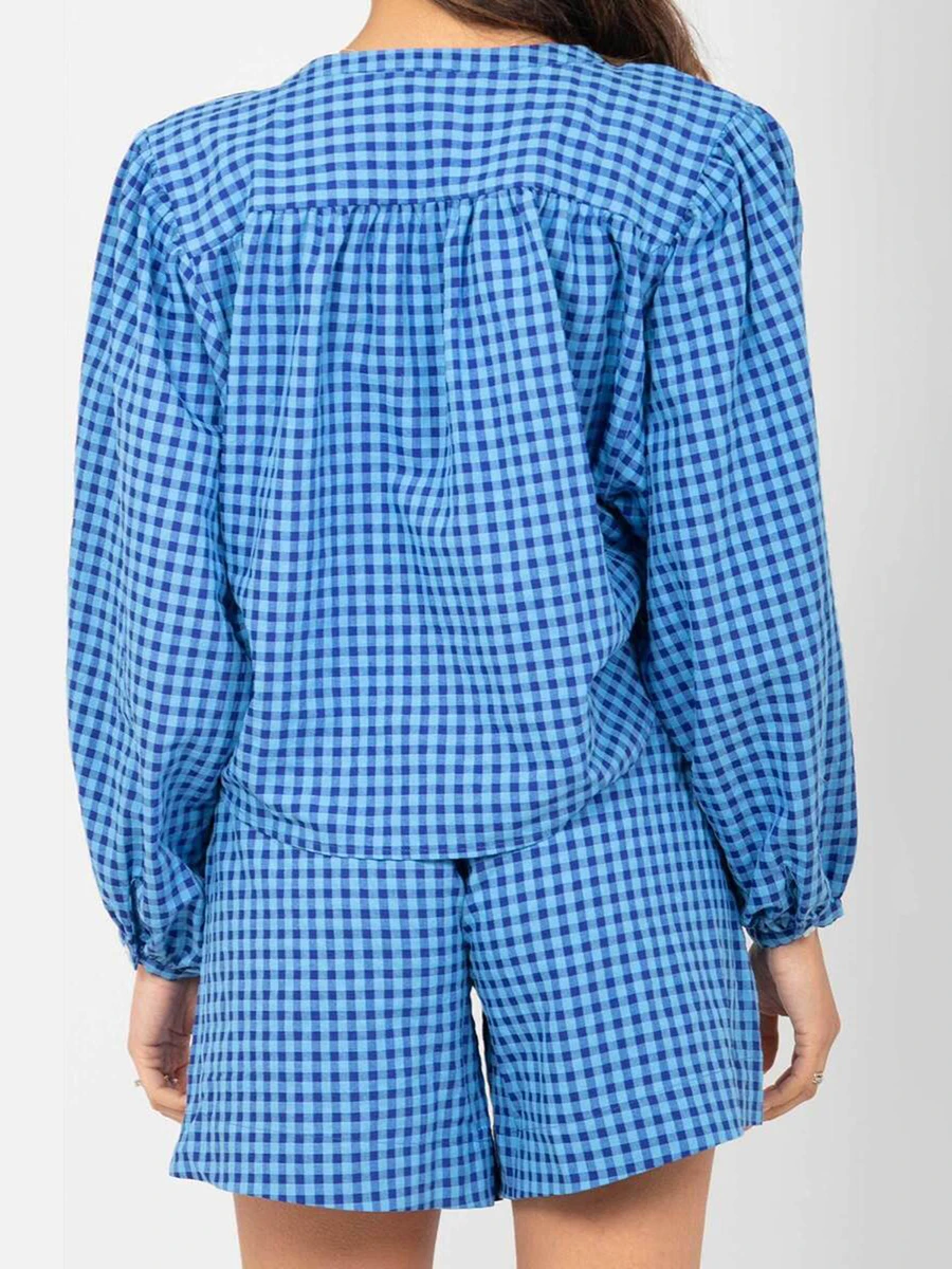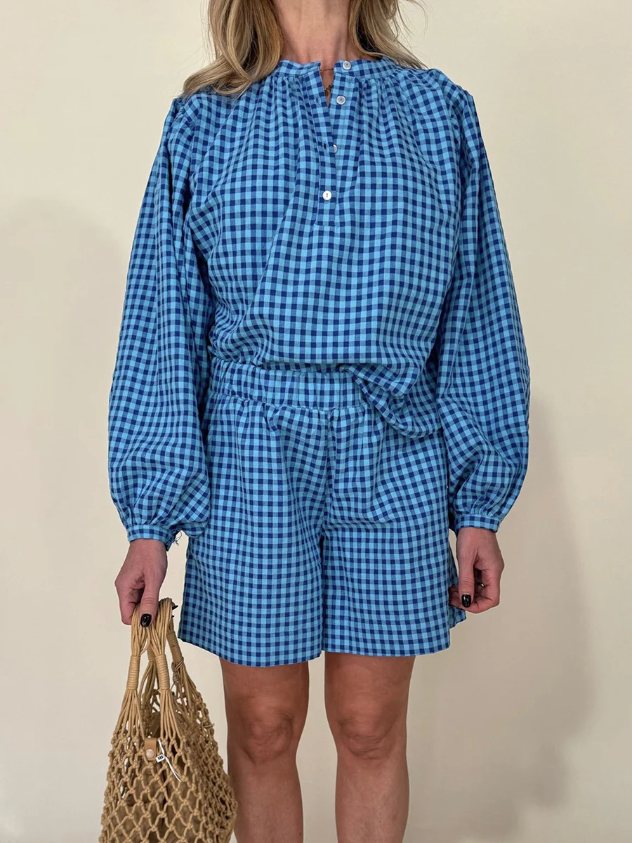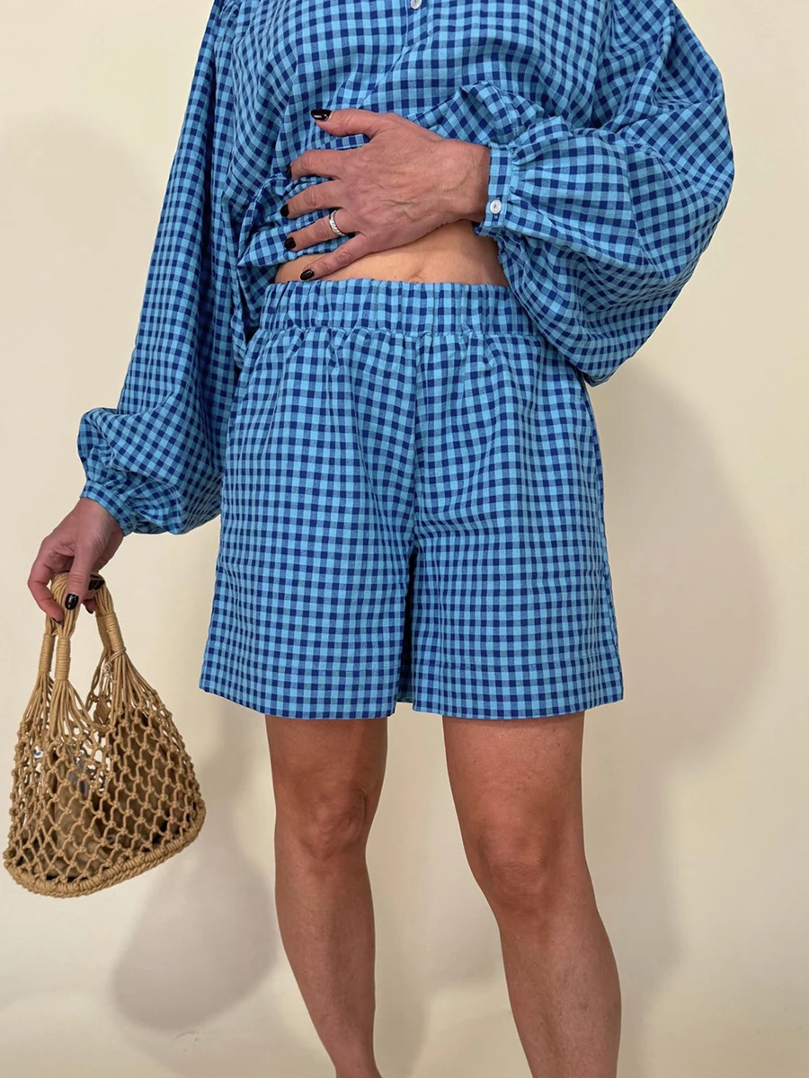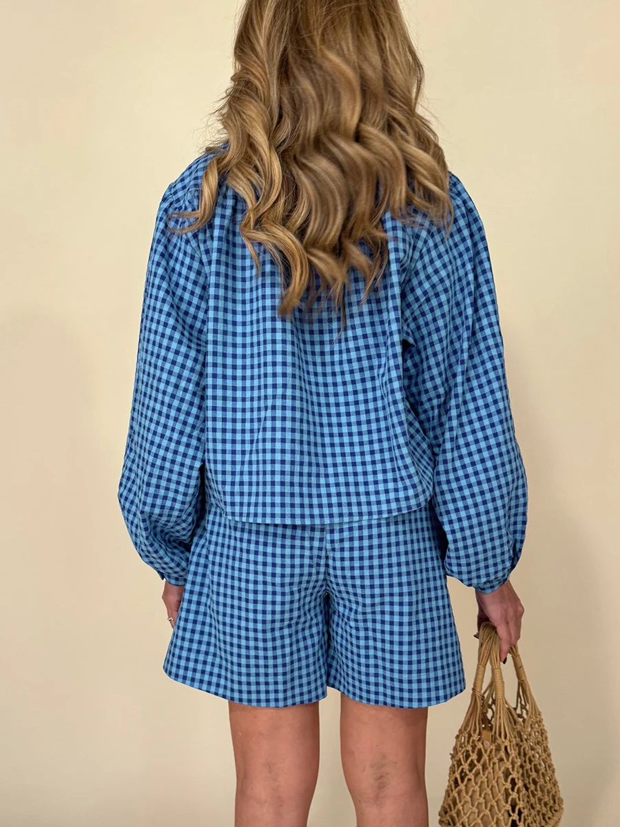 Women Pajamas Set 2 Pieces Loungewear Suits Plaid Buttons Long Sleeve Loose Tops and Shorts Sleepwear Outfits