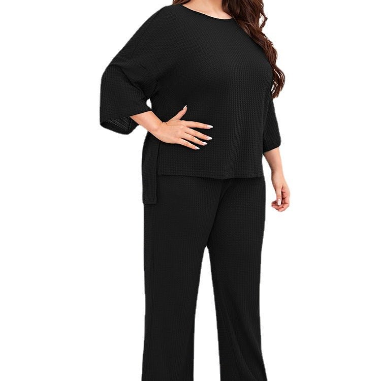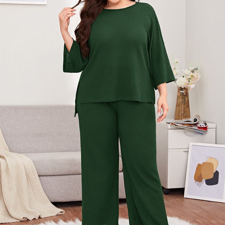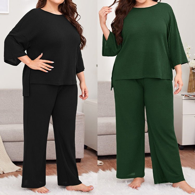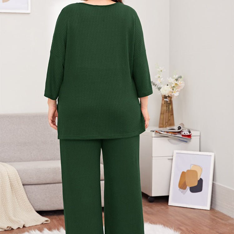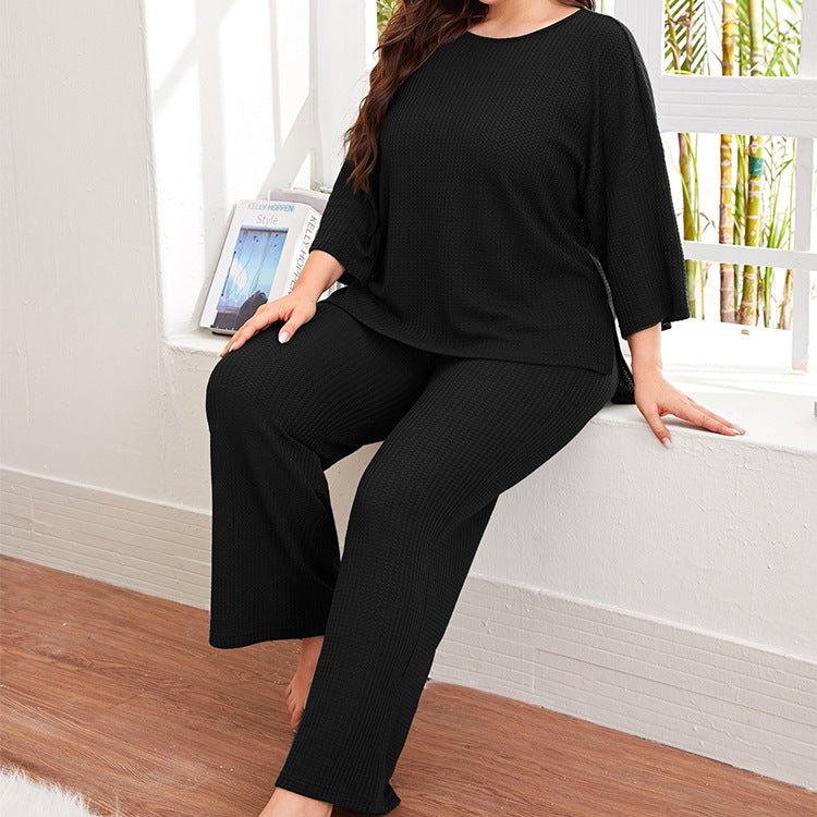 CasualCurves: Plus-size Women’s Pajama Set with 3/4 Sleeves